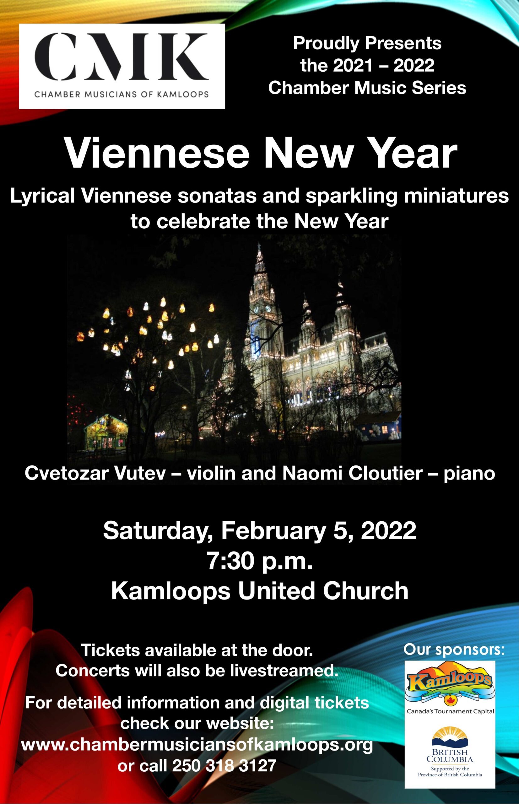 Celebrate the New Year in the Classical and Romantic styles of Viennese composers through violin and piano sonatas and sparkling miniatures that radiate the lyricism of music in Vienna. Featuring music by Mozart, Schubert, Brahms, Dvorak, J. Strauss, and Kreisler.